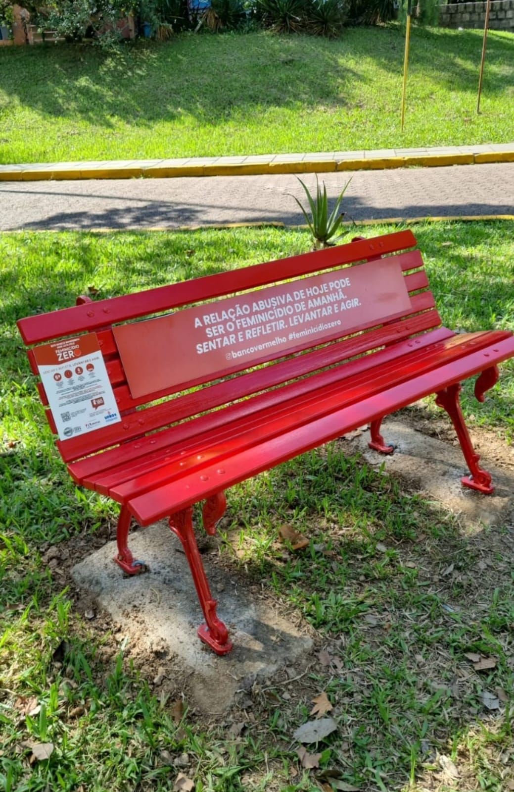 Não à violência contra as mulheres: ADUFRGS-Sindical apoia e participa da inauguração do Banco Vermelho