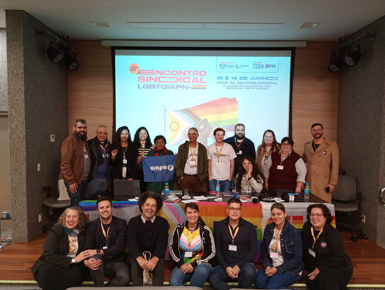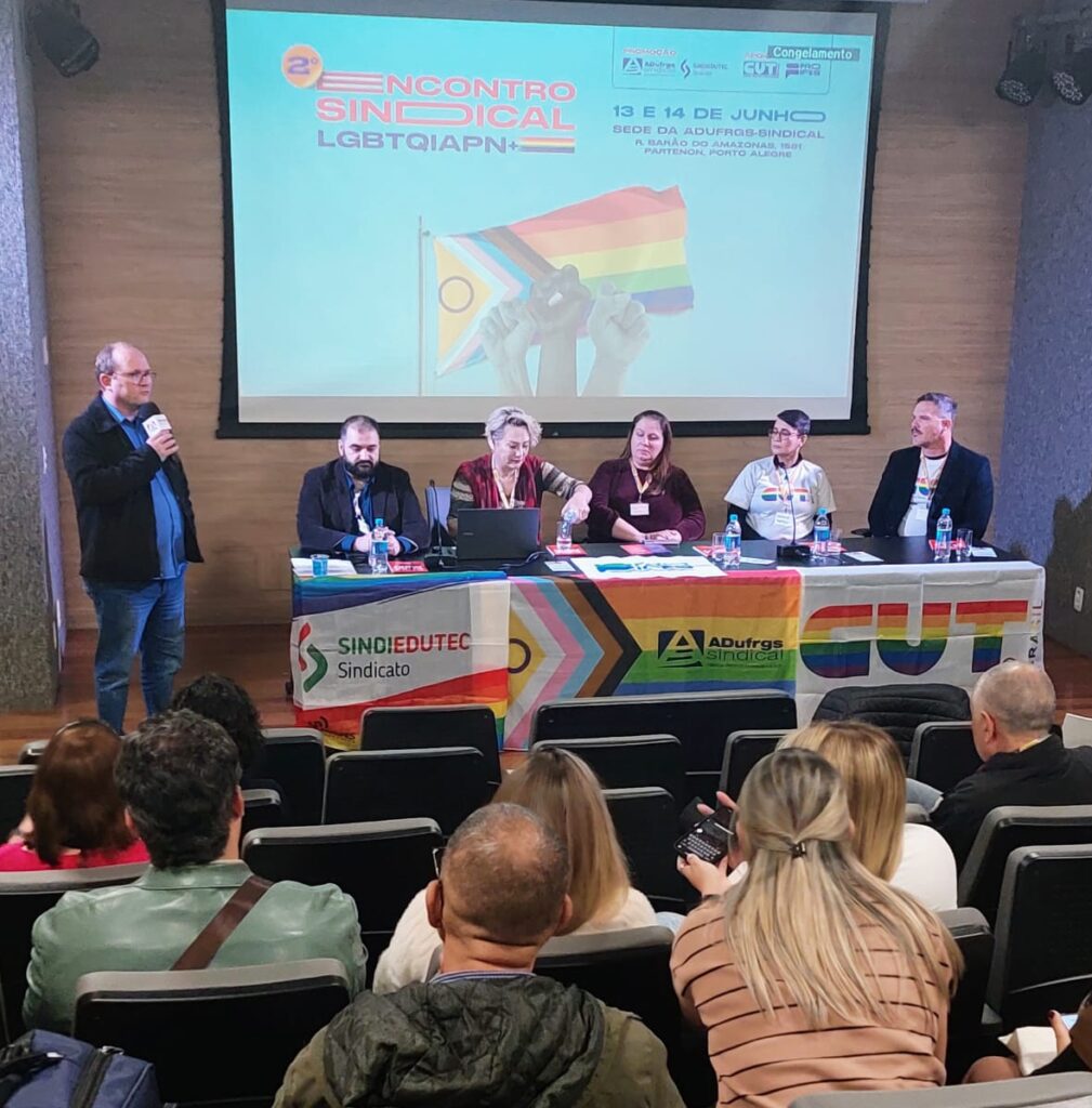 Nos dias 13 e 14 de junho, a sede da ADUFRGS-Sindical, em Porto Alegre, foi palco do II Encontro Sindical LGBTQIAPN+, reunindo docentes, lideranças sindicais, representantes da comunidade LGBTQIAPN+ e aliados da diversidade para debater políticas afirmativas, inclusão e sustentabilidade nas instituições federais de ensino.