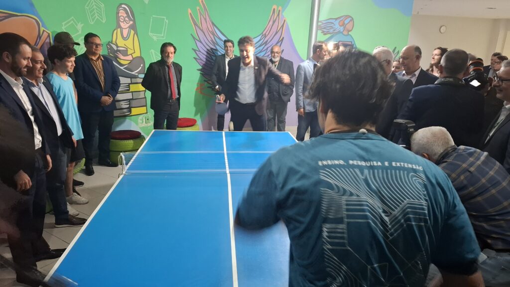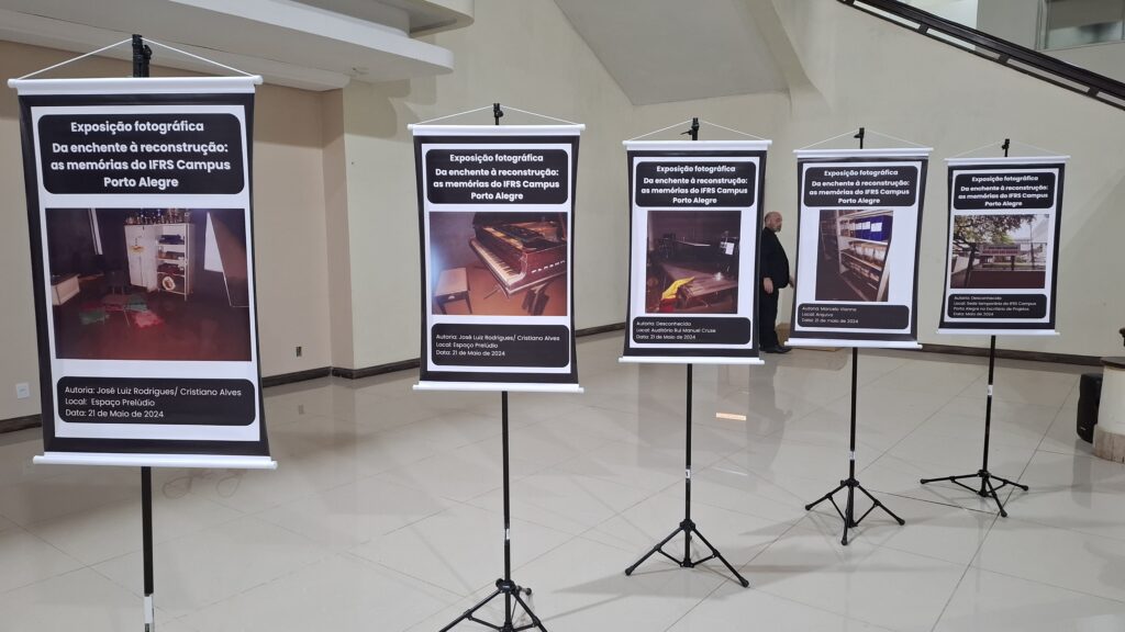 Ministro interagiu com estudantes e professores e visitou a exposição fotográfica Memórias da Enchente do IFRS Porto Alegre.