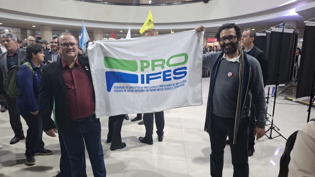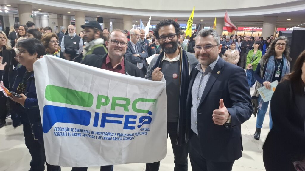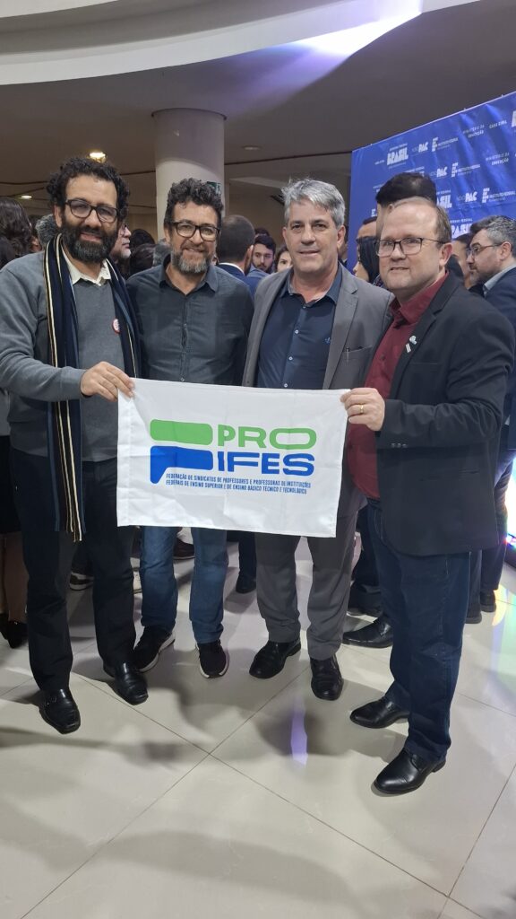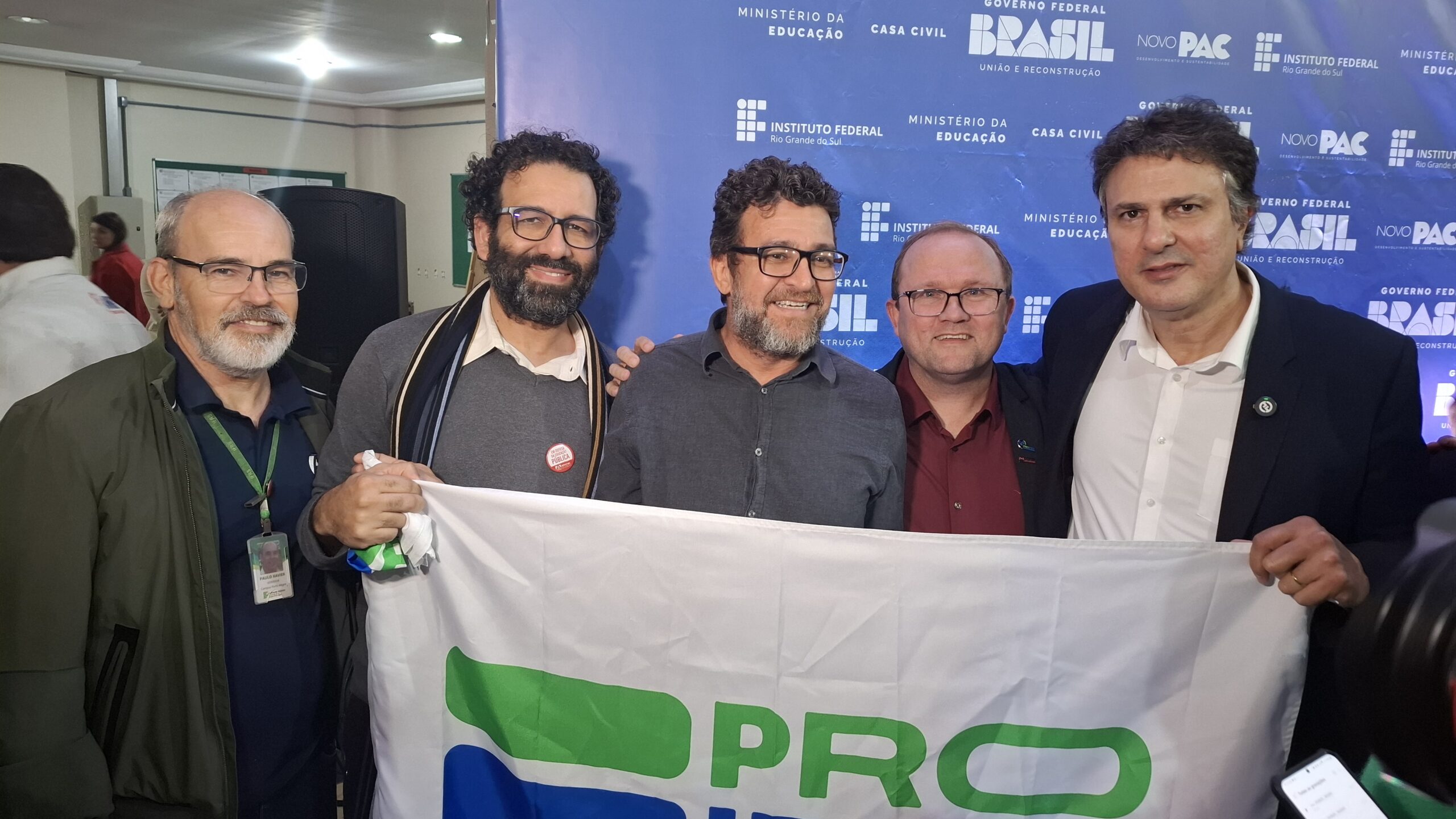 Na quarta-feira (20/08), o presidente da ADUFRGS-Sindical, Jairo Bolter, o diretor de Assuntos Jurídicos do sindicato, Paulo Artur Xavier, o diretor de Assuntos da Carreira EBTT, Roger Sauandaj Elias e o diretor de Comunicação do PROIFES-Federação, Jailson Alves, acompanharam a visita do ministro da Educação, Camilo Santana, ao campus do IFRS Porto Alegre.