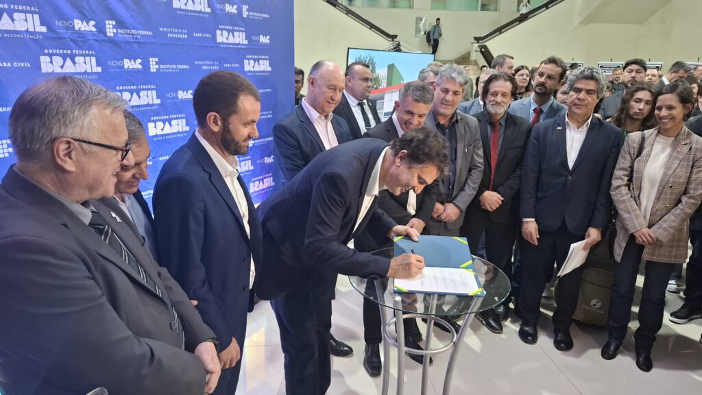 Santana assinou a ordem de serviço das obras do Campus IFRS Zona Norte, que integram a expansão dos mais de 100 novos campi de Institutos Federais pelo Brasil com investimento de R$ 25 milhões do Novo Programa de Aceleração do Crescimento (Novo PAC).