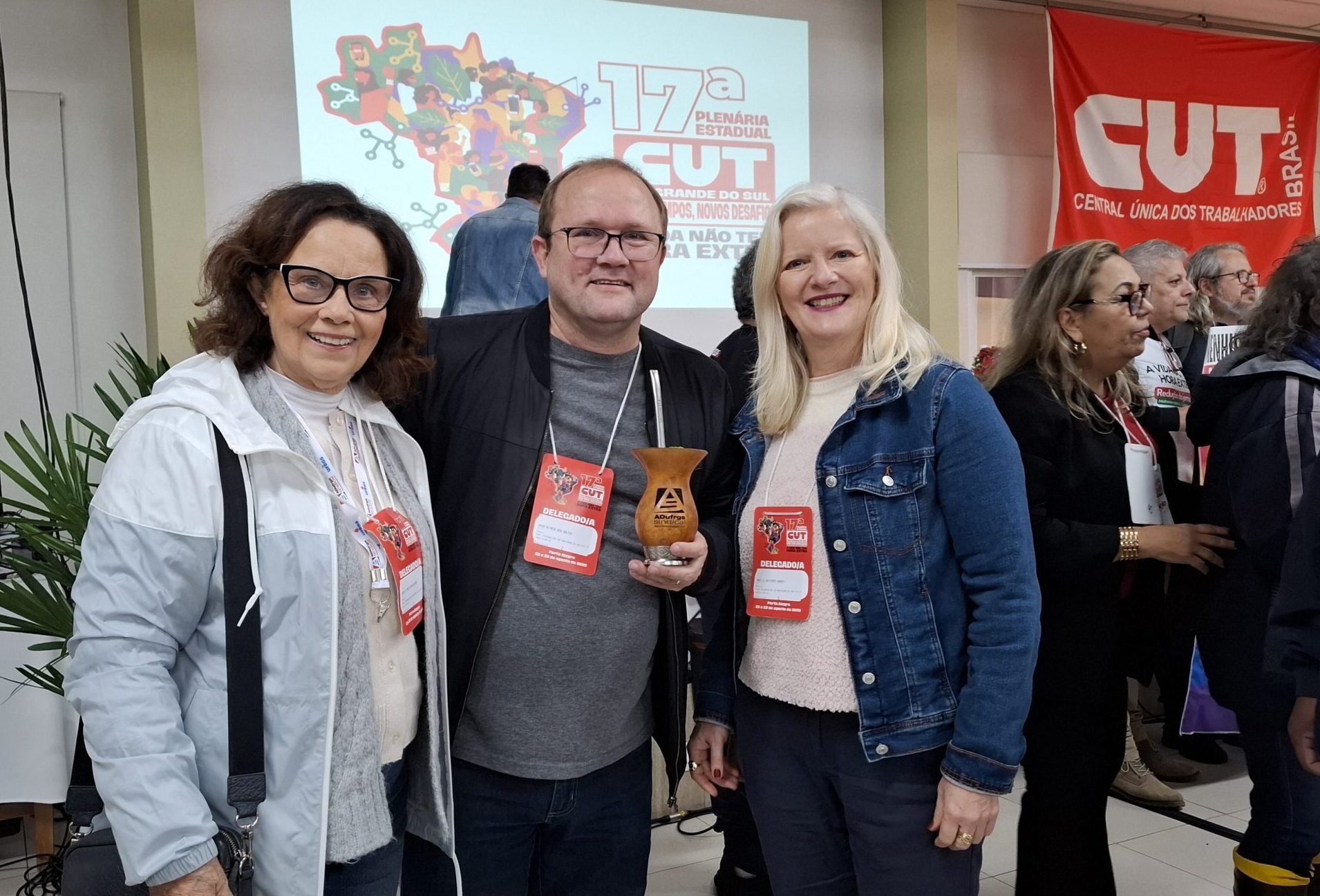 A delegação da ADUFRGS-Sindical, composta pelas professoras Mariliz Gutterres (diretora de Aposentadoria e Previdência), Graciela Quijano e pelo professor Jairo Bolter (presidente do Sindicato), participou da 17ª Plenária Estadual da CUT-RS, realizada nesta sexta e sábado, 22 e 23, em Porto Alegre. Na ocasião, a professora Luciana Nunes teve aprovado seu nome na recomposição da diretoria da CUT RS, e o presidente Jairo Bolter foi escolhido para integrar a delegação da Plenária Nacional.