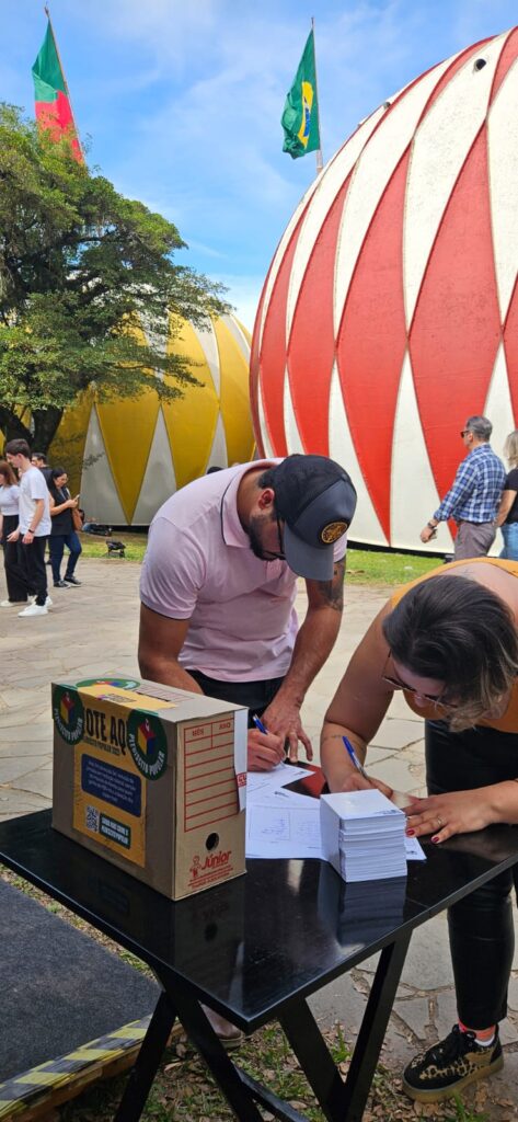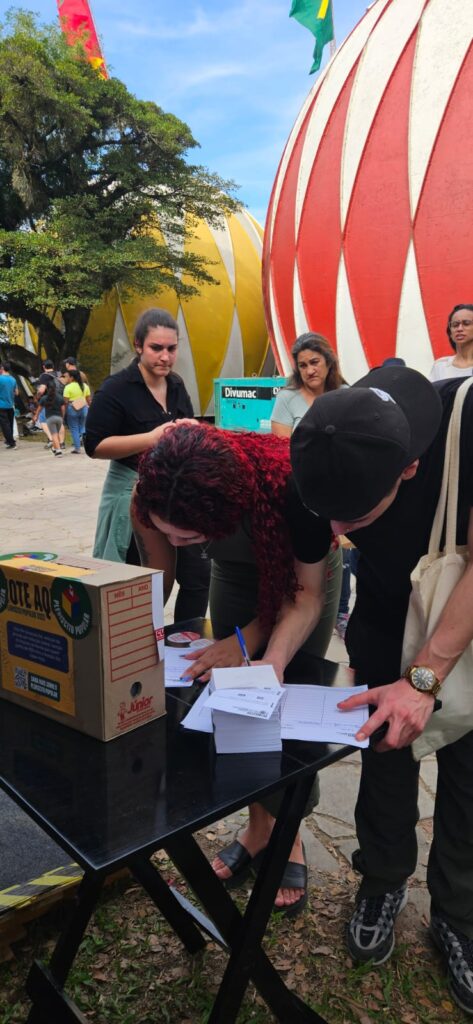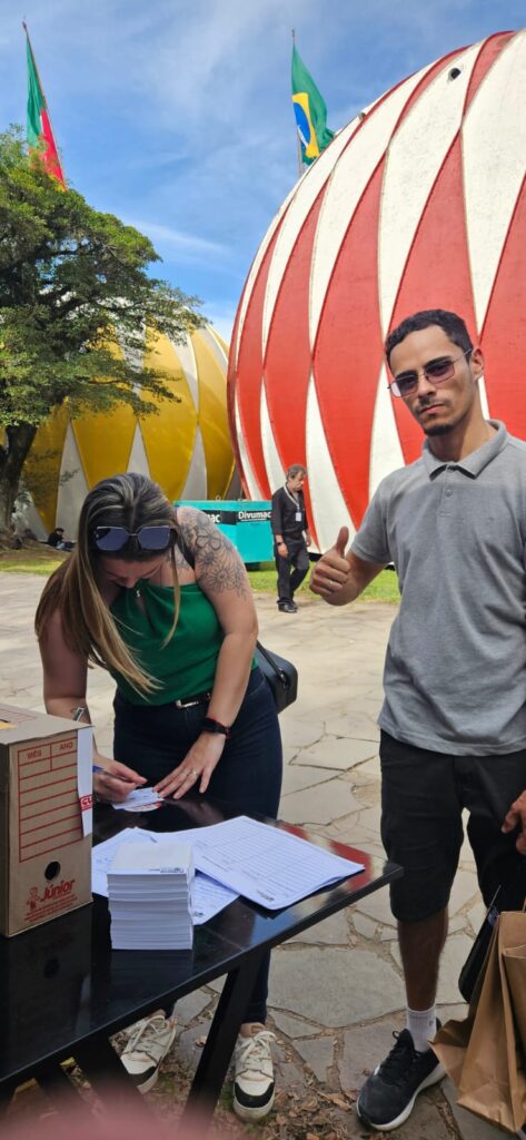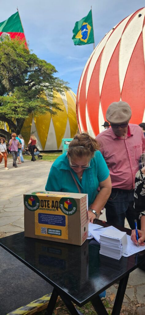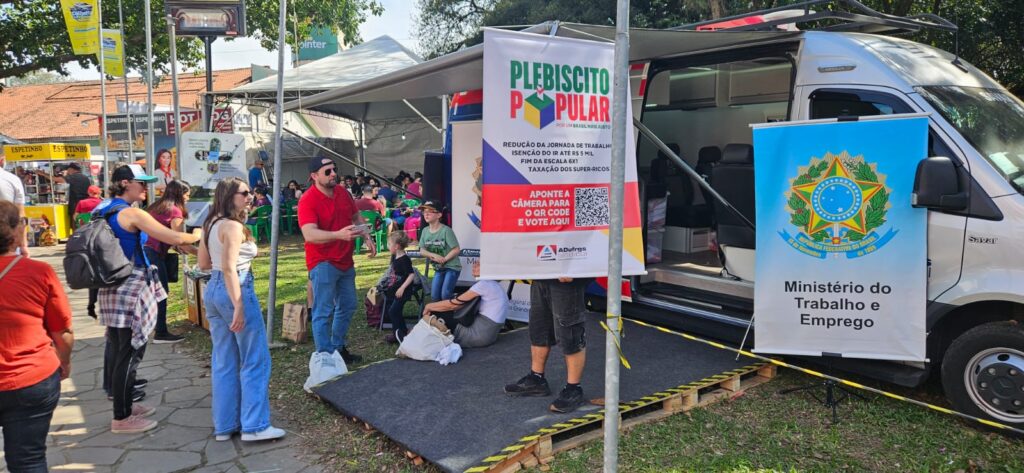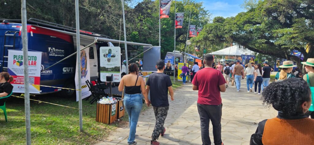 Neste final de semana a ADUFRGS-Sindical deu início à sua participação na Expointer 2025, com a presença da sua unidade móvel no parque. Além de receber filiados, o Sindicato também oferece a oportunidade para todos os participantes do evento de votarem no Plebiscito Popular 2025, organizado pelas entidades que compõem as Frentes Brasil Popular e Povo Sem Medo, entre elas a CUT.
