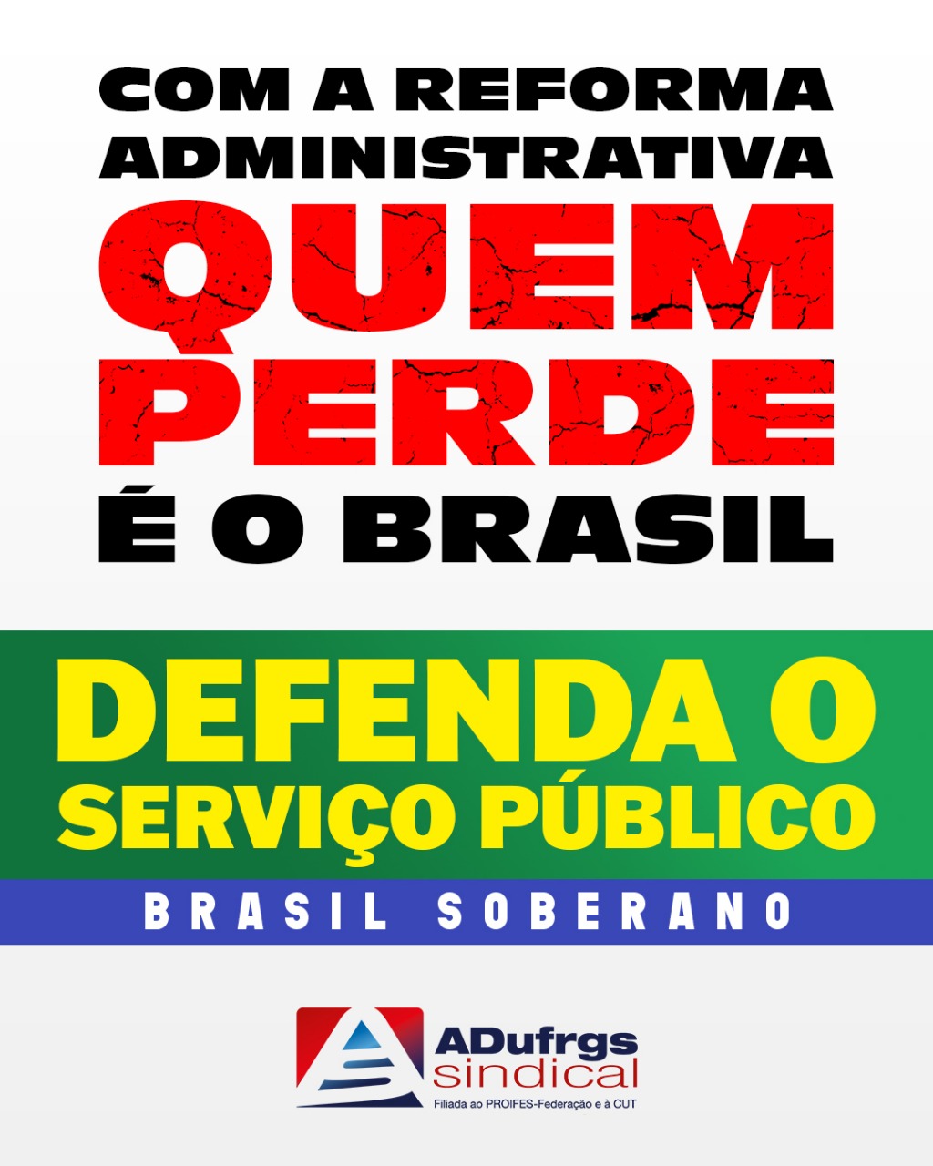 A ADUFRGS-Sindical, juntamente com a CUT e o PROIFES-Federação, seguirá mobilizada para exigir transparência no debate sobre a reforma administrativa e promover a conscientização da sociedade sobre seus impactos. A defesa da democracia, do serviço público de qualidade e de um país justo e soberano está no centro da mobilização.
