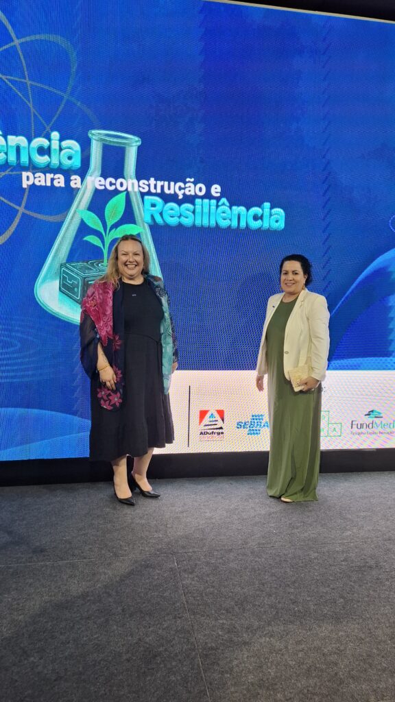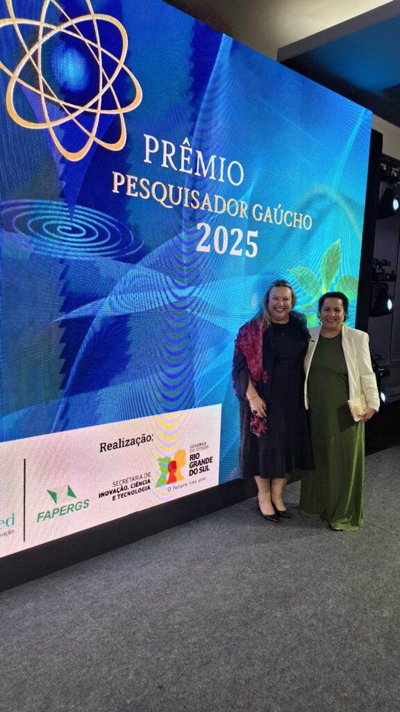 Na noite de terça-feira (21/10), a vice-presidente da ADUFRGS-Sindical, Cleidilene Magalhães, e a diretora de Secretaria, Débora Coelho representaram o sindicato na cerimônia de entrega do Prêmio Pesquisador Gaúcho 2025 da FAPERGS. Com o tema “Ciência para a Reconstrução e Resiliência”, a iniciativa reconhece o trabalho de pesquisadores e profissionais que se destacaram na academia, nos setores público, industrial, empresarial e na área de comunicação.