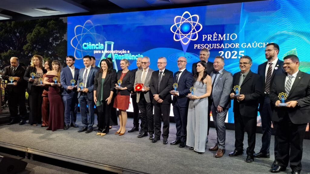 Durante o evento, a professora Cleidilene fez a entrega do Troféu Pesquisador Gaúcho ao professor Tarcísio Abreu Saurim, dos programas de pós-graduação em Engenharia de Produção e em Engenharia Civil, diretor do Centro de Biotecnologia da UFRGS e professor junto aos PPGs em Ciências Farmacêuticas e Biologia Celular e Molecular. Ele conquistou o prêmio Pesquisador na Empresa, pelo Projeto Regenera – Moléculas do Mar. Na ocasião, o docente foi representado pelo professor Flávio Kapczinski (Pró-Reitor de Pesquisa da UFRGS).