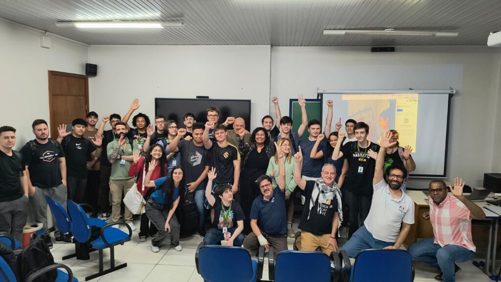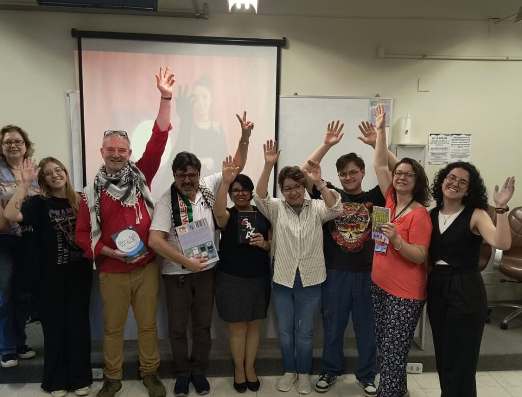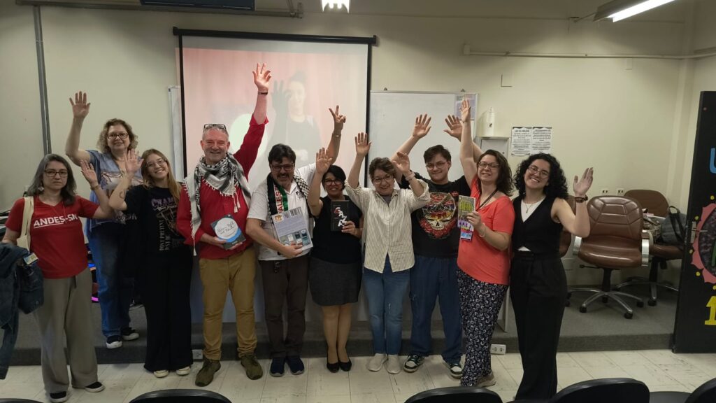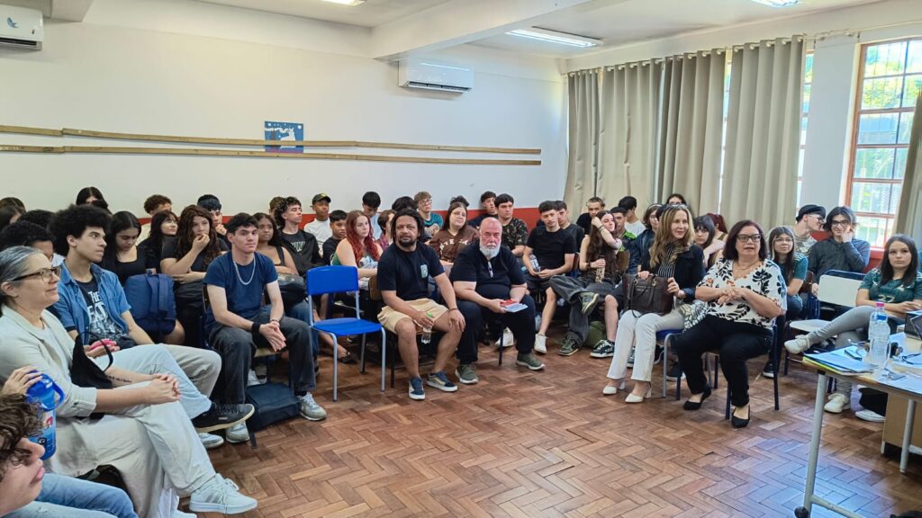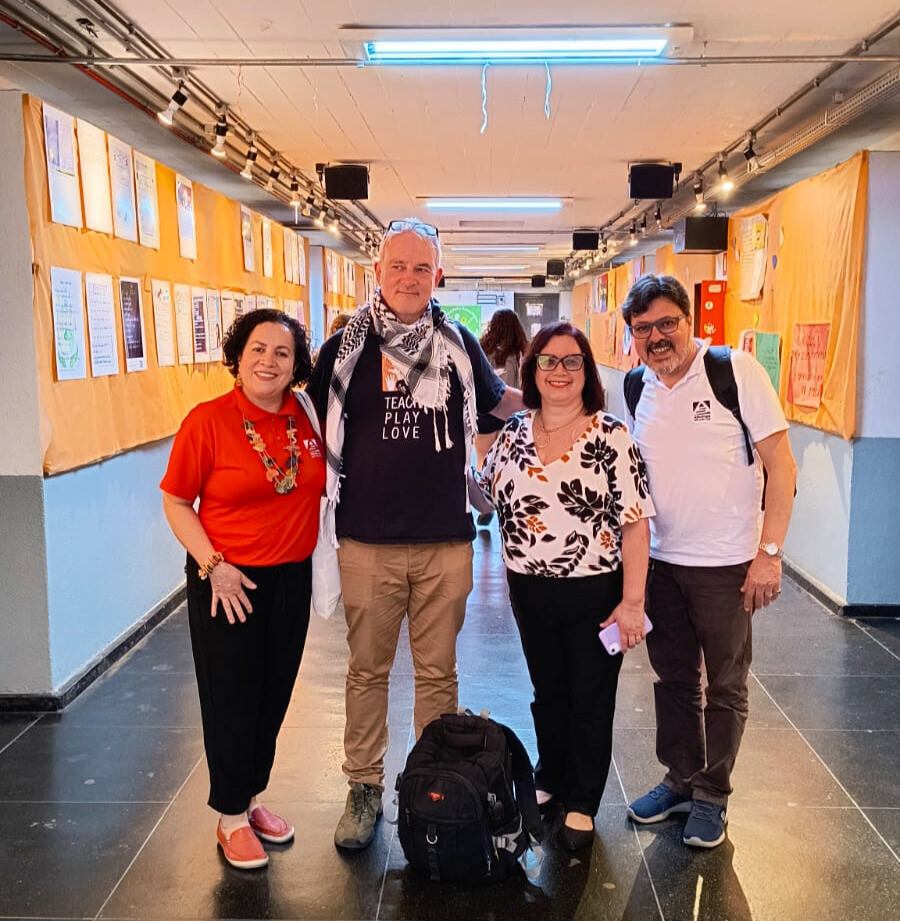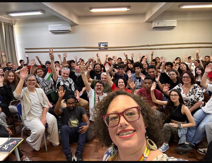 Depois da palestra promovida e realizada pela ADUFRGS-Sindical, no dia 20 de outubro, o projeto Hands Up “Amplificando as Vozes das Crianças de Gaza” percorreu o IFSul Sapucaia do Sul, dia 21 de outubro, o Colégio Aplicação UFRGS, dia 22 de outubro, e a Escola Estadual de Ensino Médio Padre Réus, no bairro Tristeza, em Porto Alegre, dia 23 de outubro.