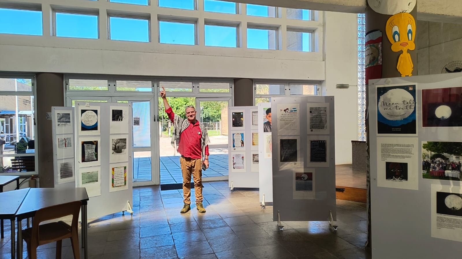 Nas visitas, o fundador do projeto Hands Up, Nick Adam Bilgrougth, comentou sobre essa experiência e levou a exposição de poemas produzidos pelas crianças de Gaza.