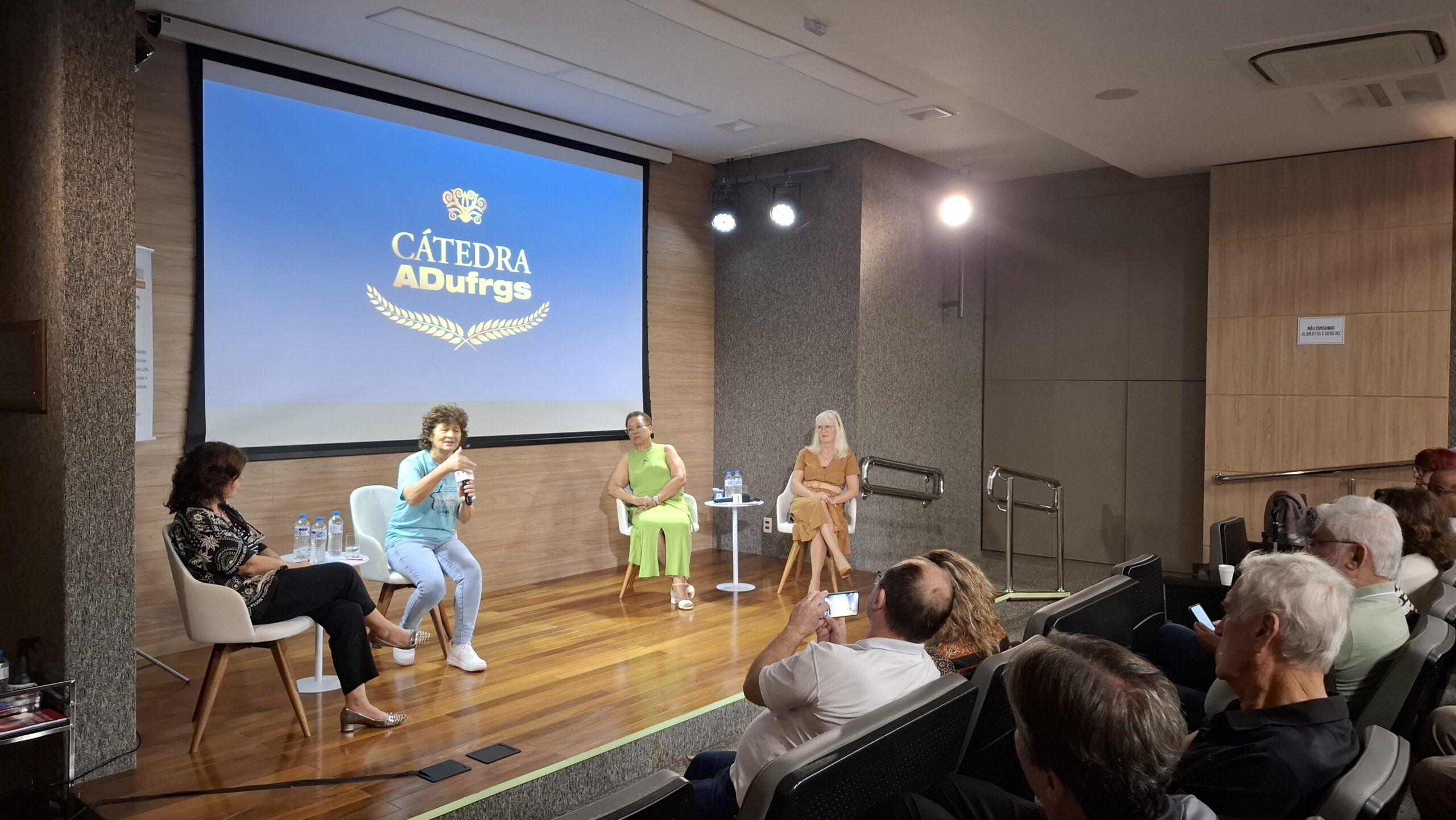 O evento encerrou após as perguntas e contribuições do auditório e com o tradicional almoço de confraternização entre as e os professores aposentados participantes das atividades do programa Cátedra ADUFRGS.
