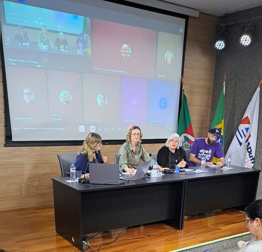 No final da tarde de terça-feira, 11, a ADUFRGS-Sindical discutiu em sua sede, em debate híbrido, transmitido pelo seu canal no YouTube (assista abaixo), o Plano Nacional de Educação (PNE) – PL 2614/2024. Entre os convidados estiveram a deputada federal Maria do Rosário e o deputado federal Pedro Uczai, vice-presidente da Comissão Especial do PNE.