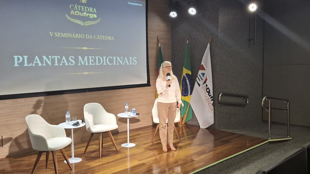 A palestra Plantas Medicinais foi ministrada pela Profa. Dra. Ionara Siqueira, diretora de Assuntos da Carreira do Magistério Superior da ADUFRGS-Sindical. Como bióloga, a professora explicou os princípios ativos de diversas plantas medicinais e suas funções terapêuticas. Ela defendeu o uso seguro e racional de plantas medicinais e fitoterápicos, citando a Política Nacional de Plantas Medicinais e Fisioterápicos aprovada por meio do Decreto nº 5.813 de 22/07/2006. O ato determina a utilização sustentável da biodiversidade brasileira e o desenvolvimento do Complexo Produtivo da Saúde.