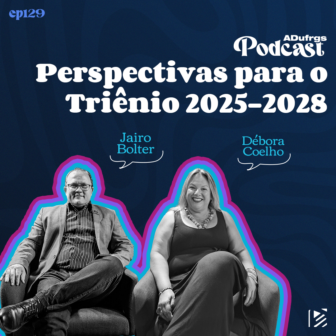 Neste episódio, o videocast traz uma entrevista com o presidente da ADUFRGS-Sindical, Jairo Bolter, e a diretora Secretária Débora Coelho sobre as perspectivas para a gestão 2025-2028.