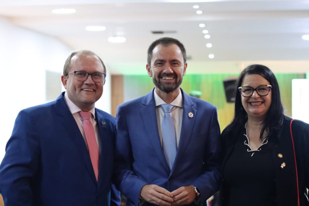 Nesta galeria, a gestão Conif 2026; o presidente da ADUFRGS-Sindical, Jairo Bolter, também Tesoureiro do PROIFES-Federação, com o reitor do IFRS, Júlio Xandro Heck, presidente do Conif, e a ex-reitora da UFCSPA e diretora de Desenvolvimento Acadêmico da Secretaria de Educação Superior (Sesu) do Ministério da Educação, também filiada da ADUFRGS.