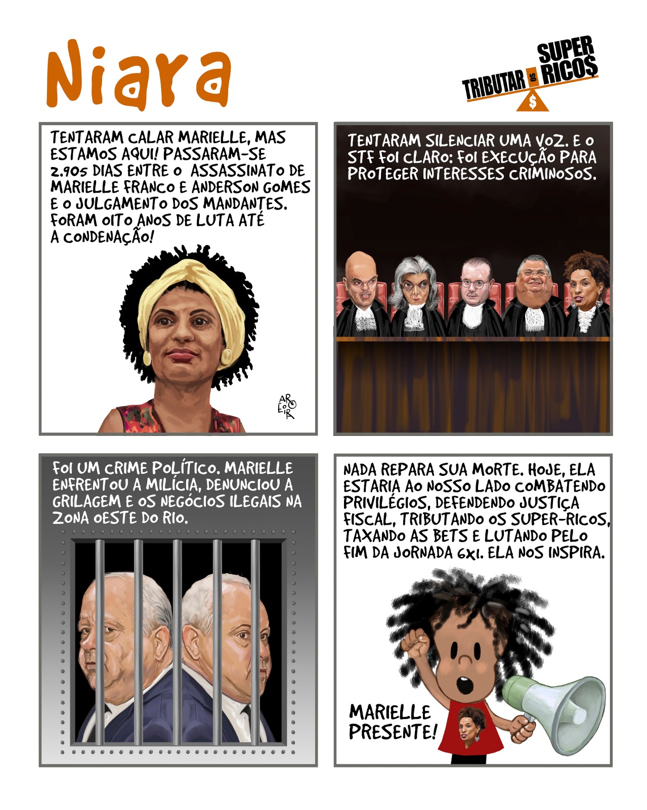 🌹 Se estivesse aqui hoje, Marielle estaria ao nosso lado defendendo justiça fiscal, lutando pela tributação dos super-ricos, pela taxação das bets e pelo fim da jornada 6×1 — em defesa da vida digna e da democracia.