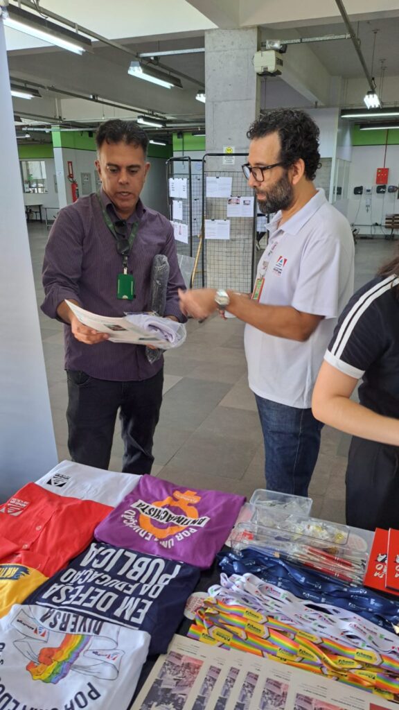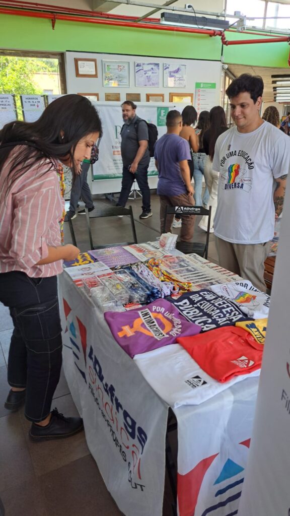 Durante a atividade, a equipe da ADUFRGS-Sindical conversou com a comunidade acadêmica sobre as lutas, conquistas e serviços oferecidos pelo Sindicato aos docentes.