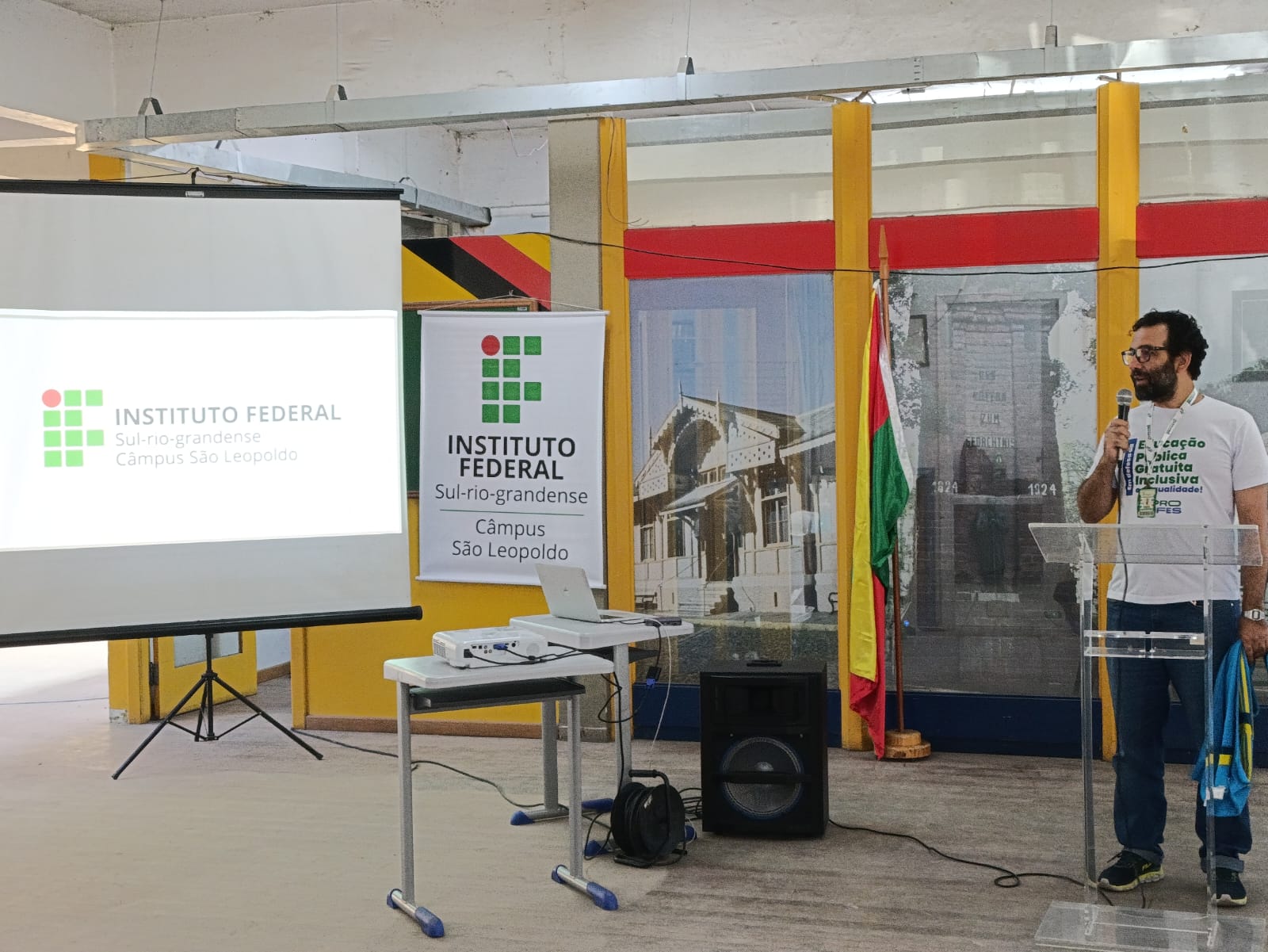 O diretor de Assuntos da Carreira EBTT da ADUFRGS-Sindical, Roger Sauandaj Elias participou, na tarde desta terça-feira (28/04), do ato de visitação ao IFSul Campus São Leopoldo em alusão à autorização de funcionamento.