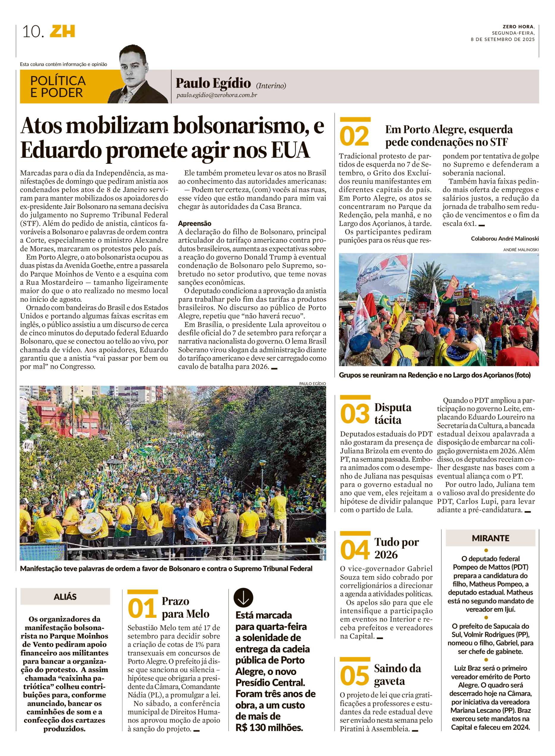 A 31ª edição do Grito dos Excluídos movimentou neste domingo, Sete de Setembro, os grupos com pautas vinculadas a questões sociais como emprego e educação em Porto Alegre. Os participantes pediam punições para os réus envolvidos na trama golpista de 08 de janeiro e defendiam a soberania nacional frente às ameaças e aos tarifaços econômicos dos Estados Unidos.
