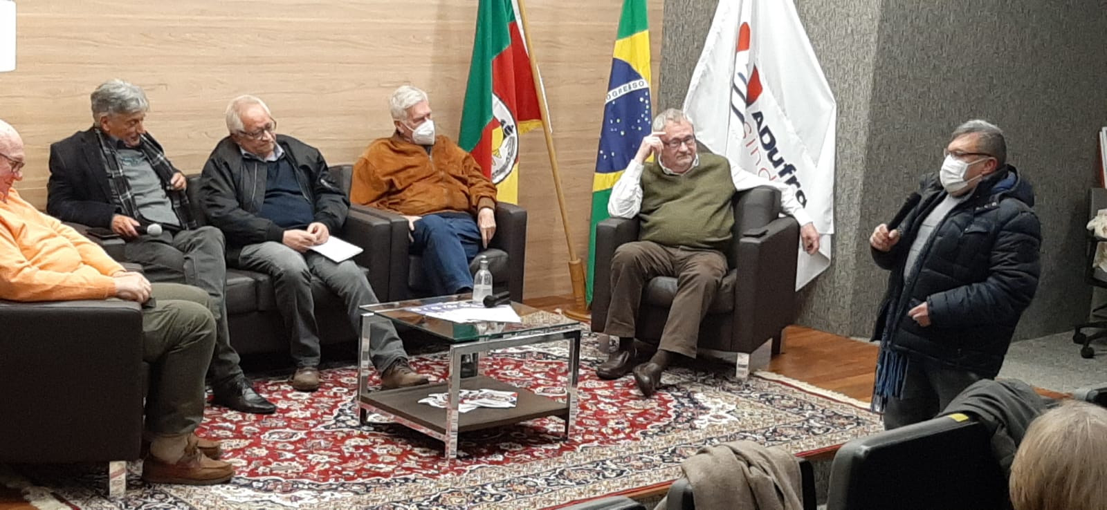 Paulo Mors fez críticas à situação financeira das universidades públicas, que reflete no desenvolvimento do País. O professor convidou o atual e os ex-presidentes para produzirem um livro com o intuito de oportunizar aos professores ingressantes nas universidades e à sociedade o conhecimento da história de lutas da ADUFRGS. “Acima de qualquer bandeira partidária é importante ressaltar a parceria entre a ADUFRGS e a CUT, principalmente nos tempos de pandemia em que a crise atingiu com mais força a população carente. A distribuição de cestas básicas é um ato de solidariedade”, mencionou.