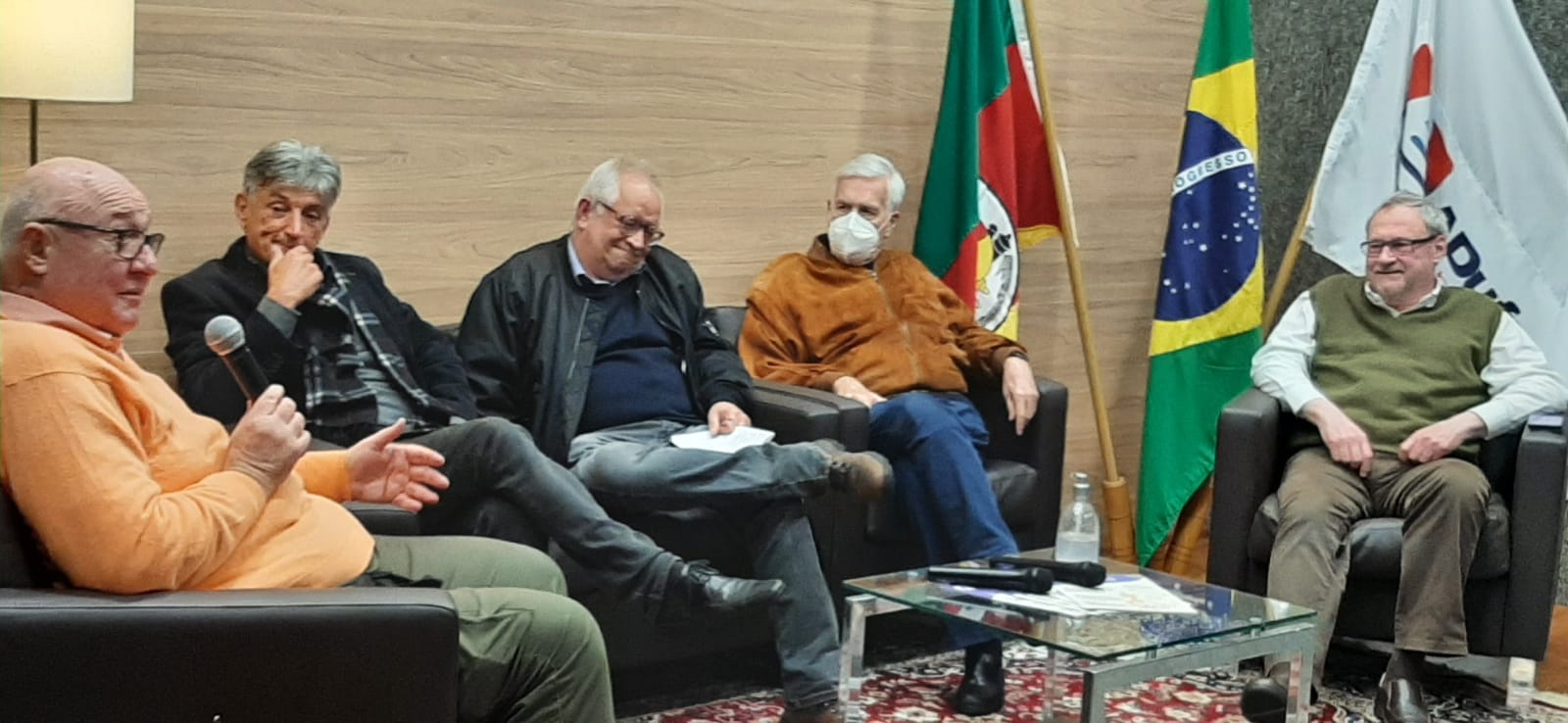 A segunda mesa de debate “O papel da ADUFRGS no Movimento Sindical” reuniu ex-presidentes da ADUFRGS, Sérgio Nicolaiewsky, Rubens Constantino Volpe Weyne, Claudio Scherer e Paulo Machado Mors, que relembraram momentos relevantes na luta do sindicato e avaliaram a conjuntura nacional.